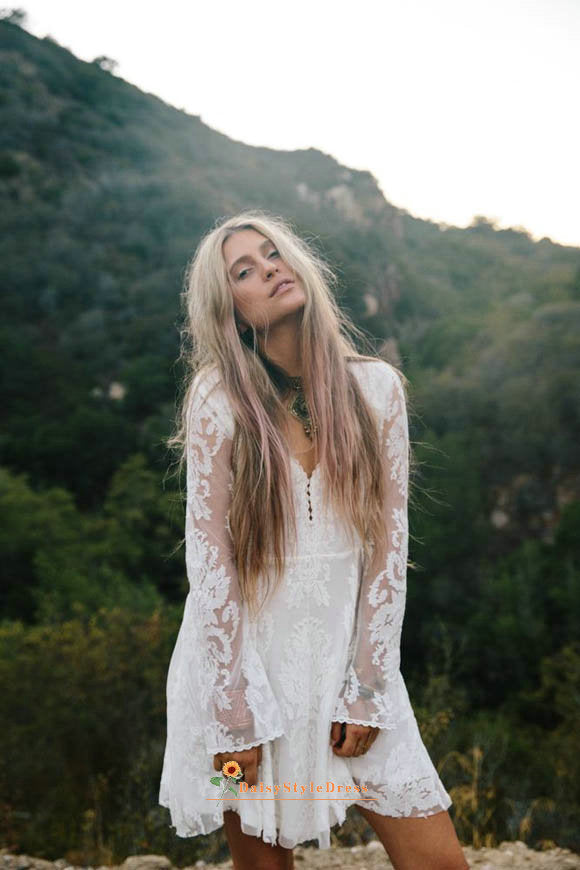 Informal Knee Length Boho Lace Wedding Dress Daisystyledress